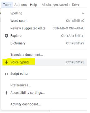 Voice Typing – Dictate speech, a great way for ELL students to practice fluency. This tool can be found under the “tools” tab.
