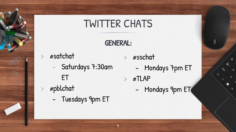 You can do a quick google search on “Twitter Chats for teachers” and find all different types of chats to try.