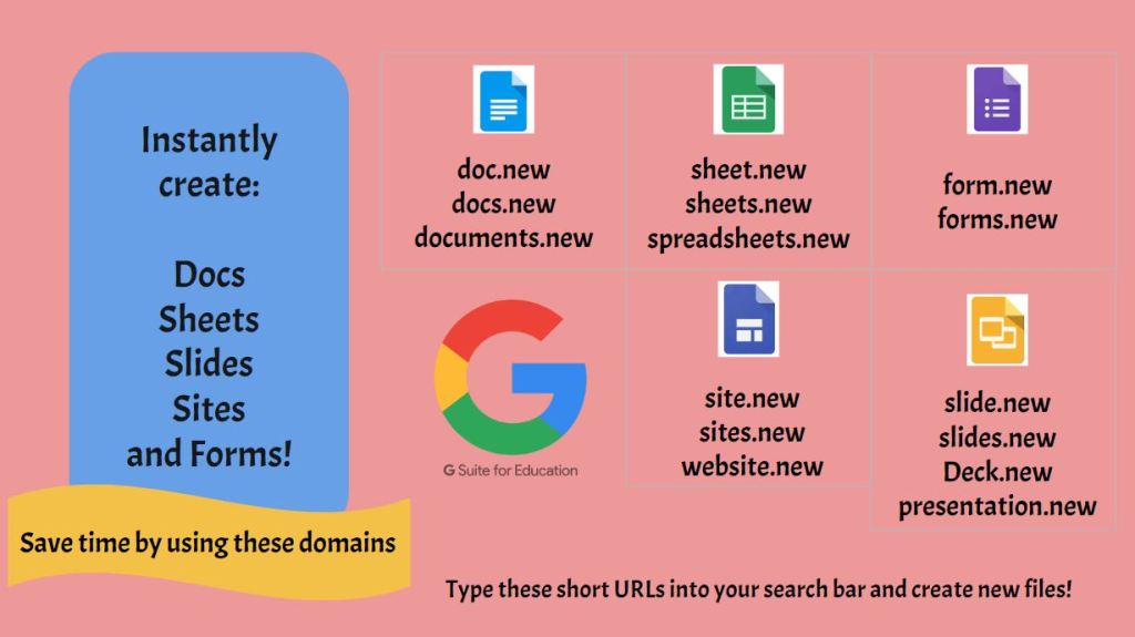 We had several options to choose from to complete this week’s assignment and I chose to redo a previous graphic. Back in 2018 when I was producing Season 3 of Tech Tuesday, I designed a graphic to show all of the various URLs you can use to create new Google files.