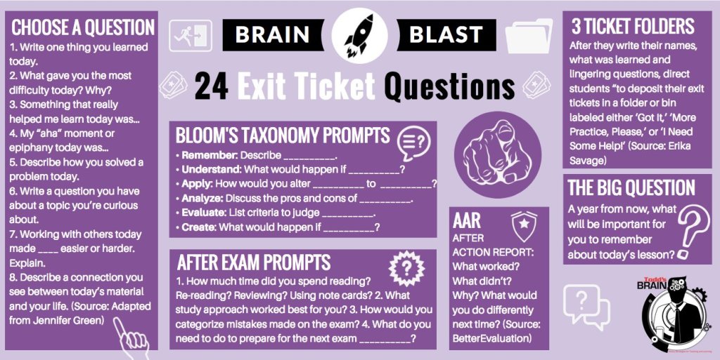 As we shift back to in-person teaching, these ideas for exit tickets by Todd Finley will be helpful to mix it up: